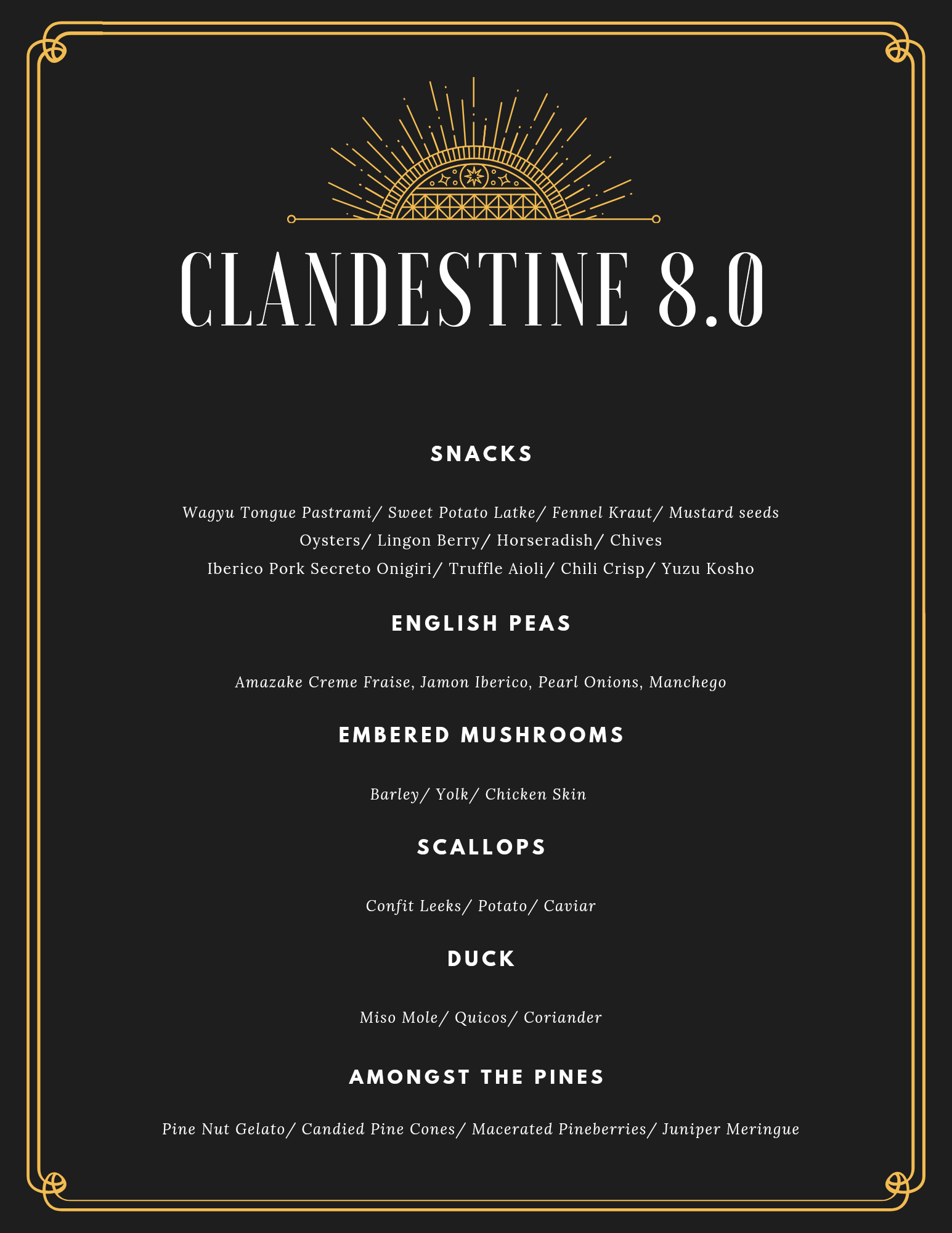 Chef Emerson Frisbie and Chef James Cruz come together to bring you, The Clandestine Dinner Series.