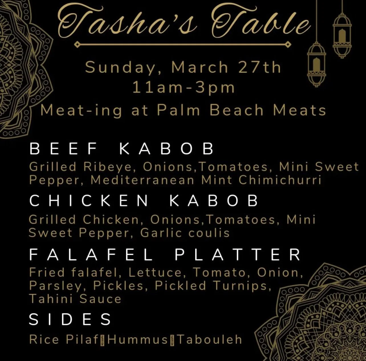 Saturday, March 27th we are excited to have a Lebanese inspired Lunch as we welcome back Chef Tasha of Tasha’s Table to take over our kitchen